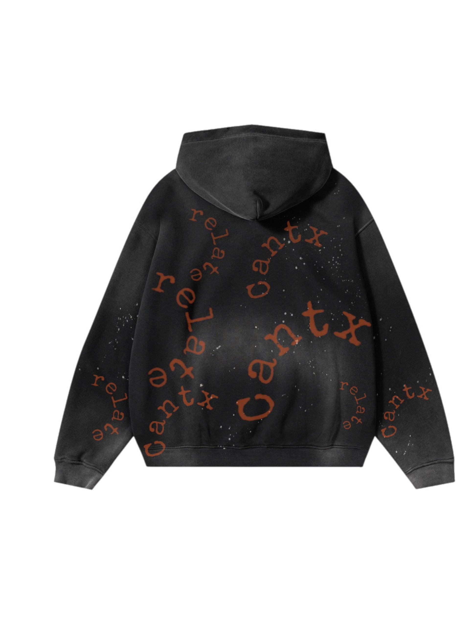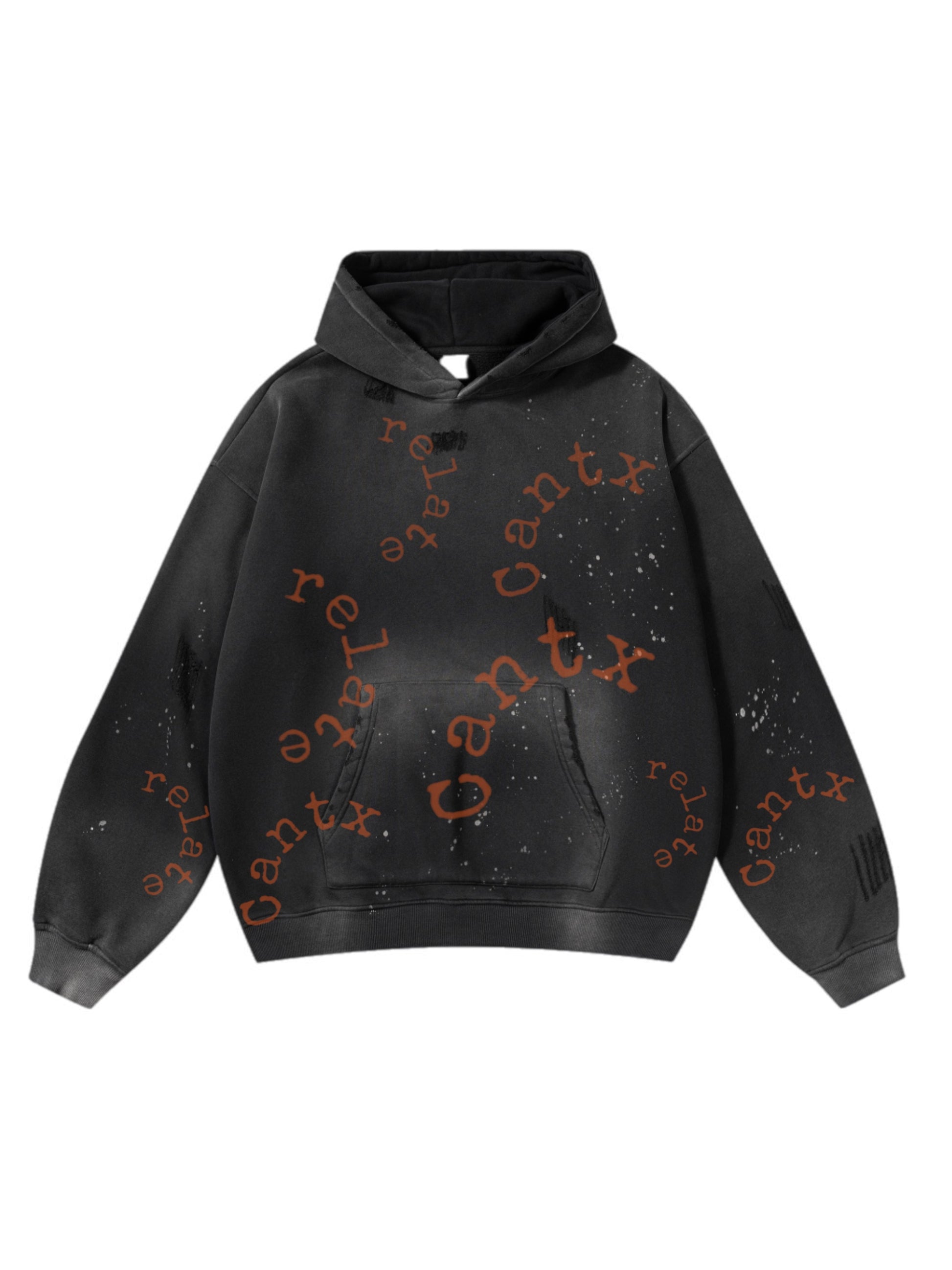 Elevate streetwear with this faded ash black hoodie featuring a bold, all-over graphic composed of scattered, rotated “cantx” letters. The medium-weight fleece fabric offers cozy warmth without bulk, making it perfect for layering. A standard kangaroo pocket and ribbed cuffs ensure a secure, snug fit, while the roomy hood provides extra warmth on chilly days.