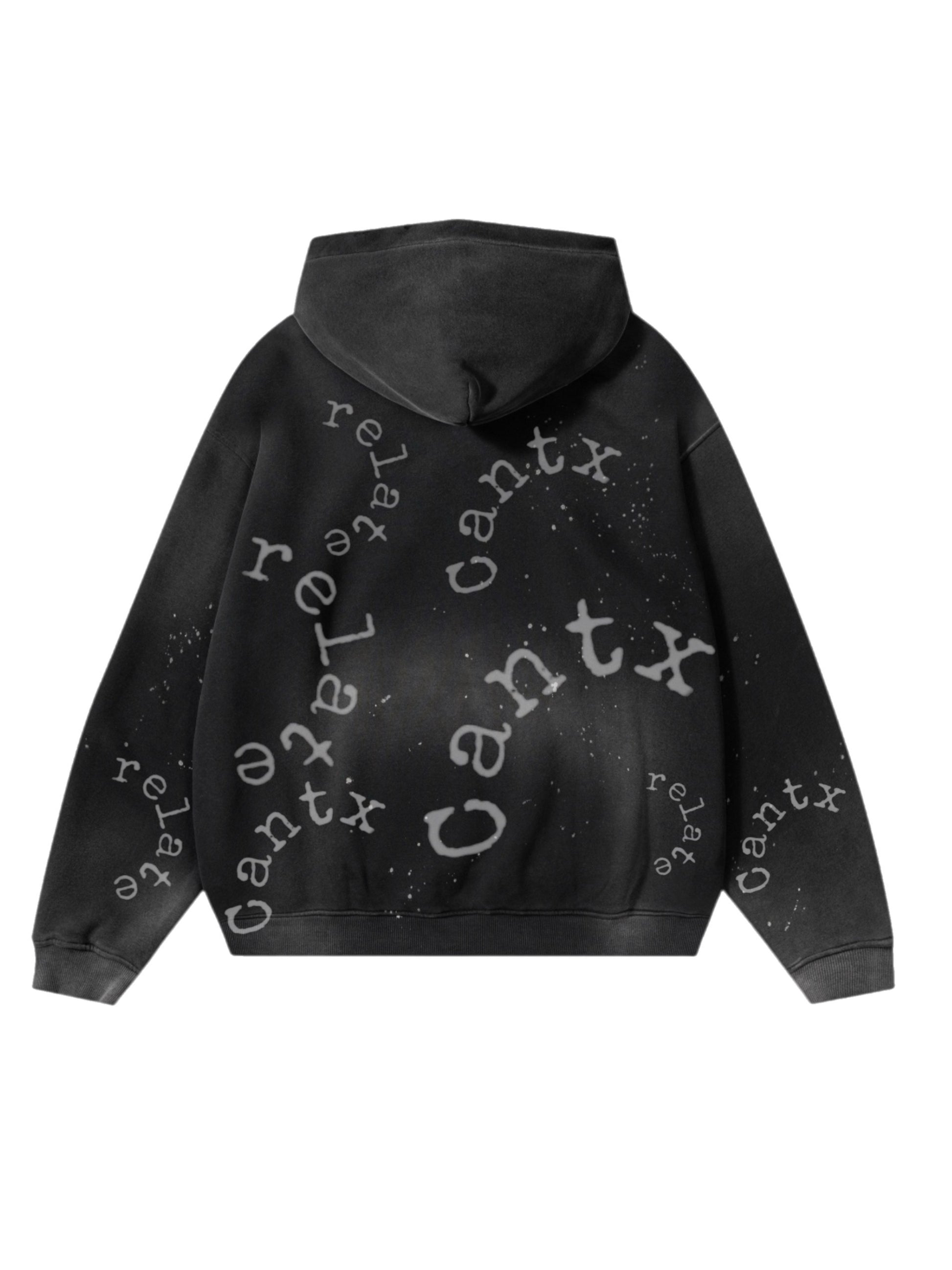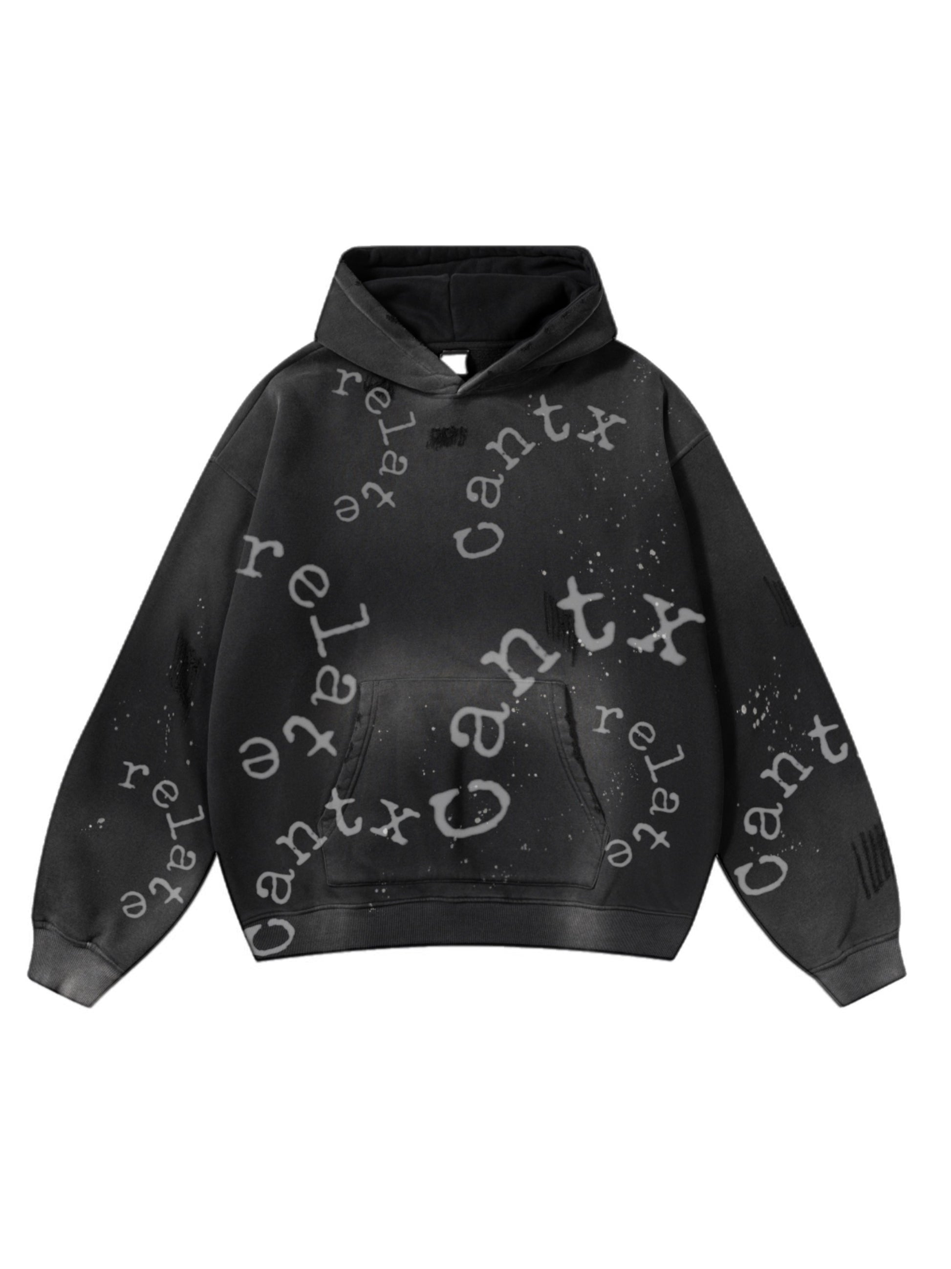 Elevate streetwear with this faded ash black hoodie featuring a bold, all-over graphic composed of scattered, rotated “cantx” letters. The medium-weight fleece fabric offers cozy warmth without bulk, making it perfect for layering. A standard kangaroo pocket and ribbed cuffs ensure a secure, snug fit, while the roomy hood provides extra warmth on chilly days.